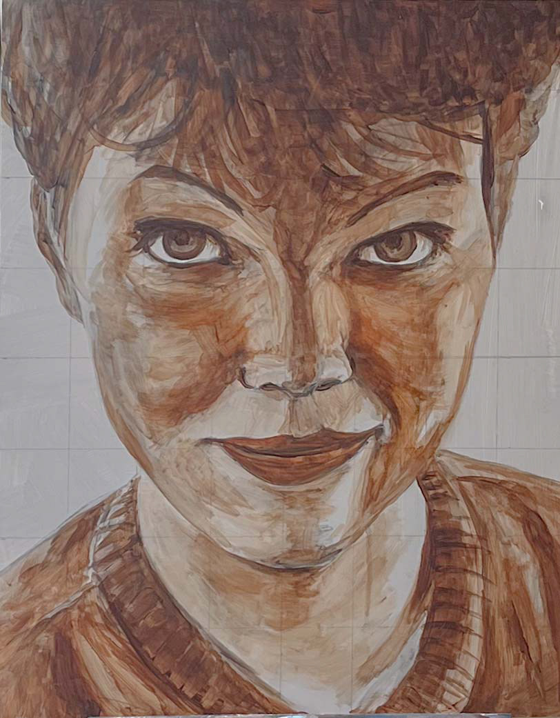 Scumbling phase completed, with the lighter areas subtly reinforced and lifted