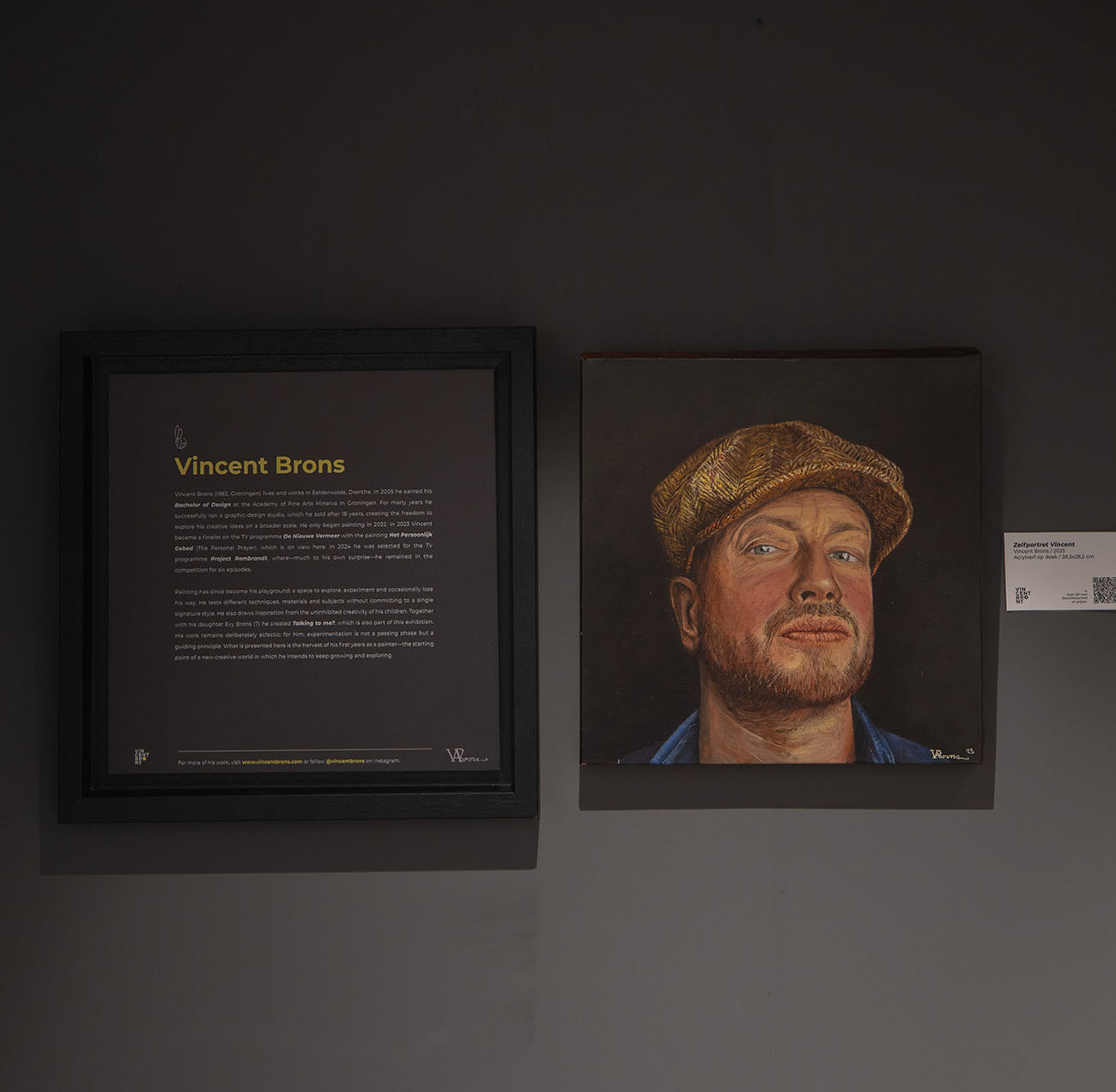 He only began painting in 2022. In 2023 Vincent became a finalist on the TV programme De Nieuwe Vermeer with the painting Het Persoonlijk Gebed (The Personal Prayer), which is on view here. In 2024 he was selected for the TV programme Project Rembrandt, where—much to his own surprise—he remained in the competition for six episodes.