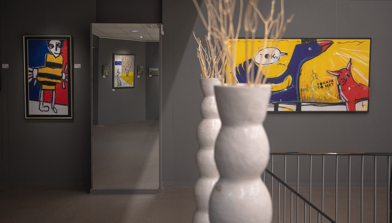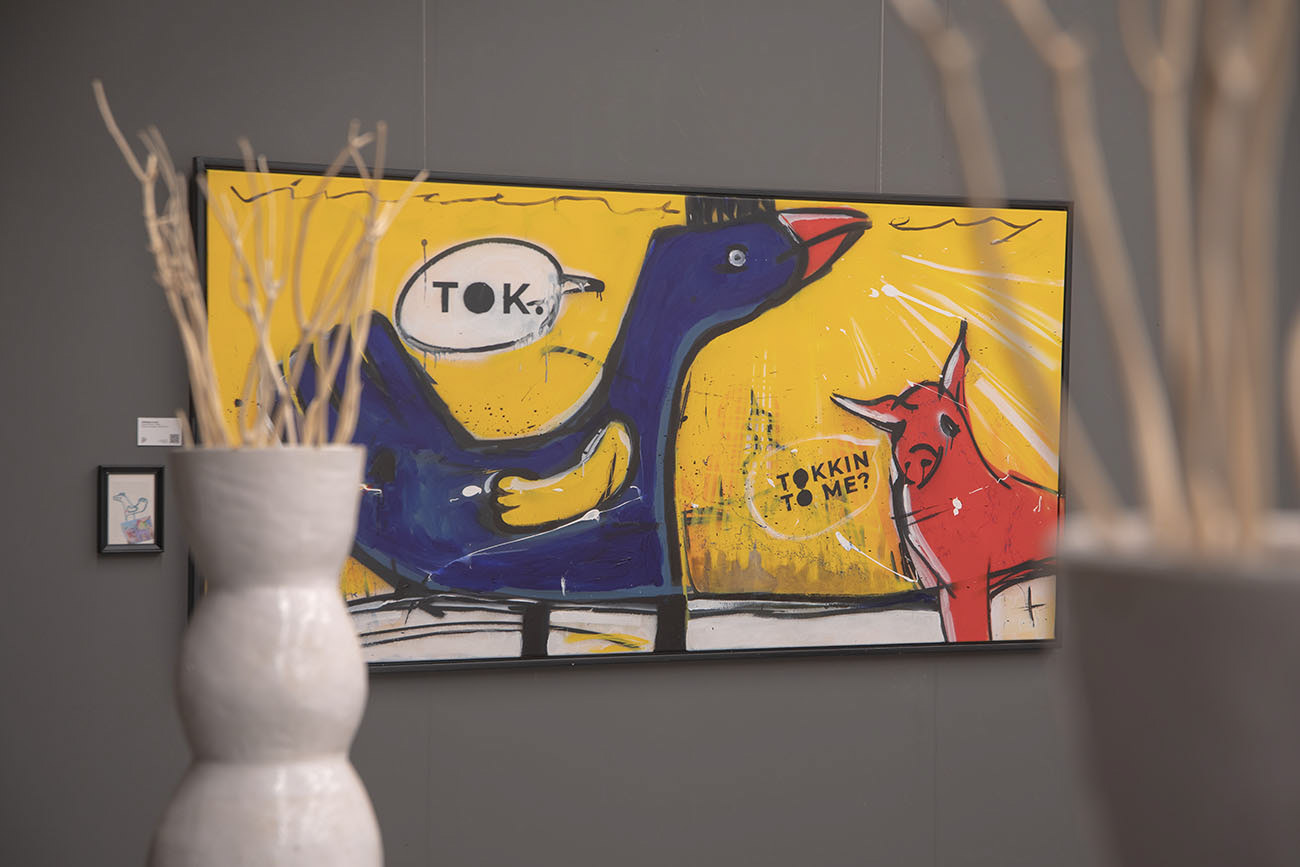 Vincent tests different techniques, materials and subjects without committing to a single signature style. He also draws inspiration from the uninhibited creativity of his children. Together with his daughter Evy Brons (7) he created Talking to me?, which is also part of this exhibition. His work remains deliberately eclectic: for him, experimentation is not a passing phase but a guiding principle. What is presented here is the harvest of his first years as a painter—the starting point of a new creative world in which he intends to keep growing and exploring.