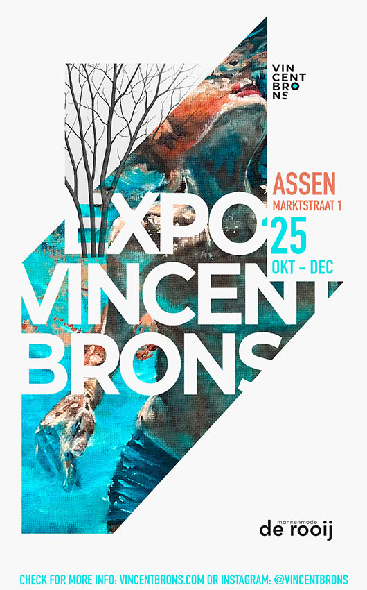 Vincent Brons (1982, Groningen) lives and works in Eelderwolde, Drenthe. In 2005 he earned his Bachelor of Design at the Academy of Fine Arts Minerva in Groningen. For many years he successfully ran a graphic-design studio in Groningen city, which he sold after 18 years, creating the freedom to explore his creative ideas on a broader scale.